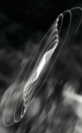 This rather uncommon tree gets me thinking. What a lovely springiness it has. At some point I think about physics class and oscillations. This is simple harmonic motion, as any physics student can see. And then I remember a high-school field trip to the Exploratorium. I was there in 2007 lingering over a small, out of the way exhibit, " Lissajous Rods ", consisting of skinny metal beams, fixed at one end, free at the other which trace periodic curves when plucked. Ah ha! I can see it now, this coniferous beam before us is a giant Lissajous Rod!