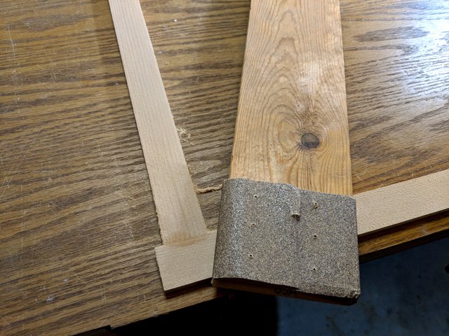 Since the stock is so small, I end up with no scrap (and make a lot of sawdust). The old-growth pine comes from a discarded dresser, and the maple comes from a discarded cabinet.
