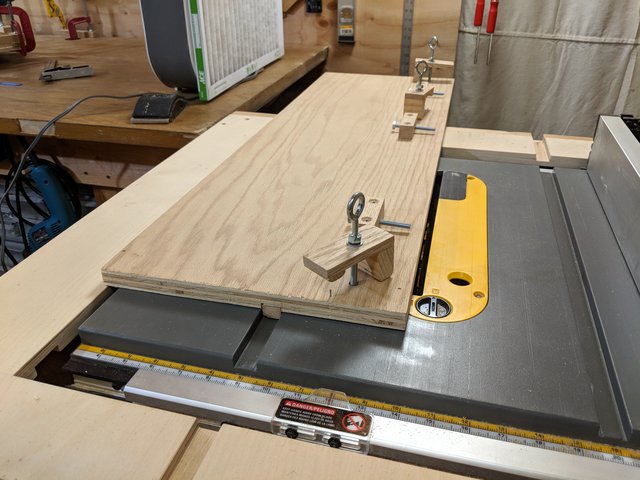 Here is the magic of this custom table saw sled, I can end up with a uniform surface across the glue joint. This takes care of the post-glue up work in one fell swoop.