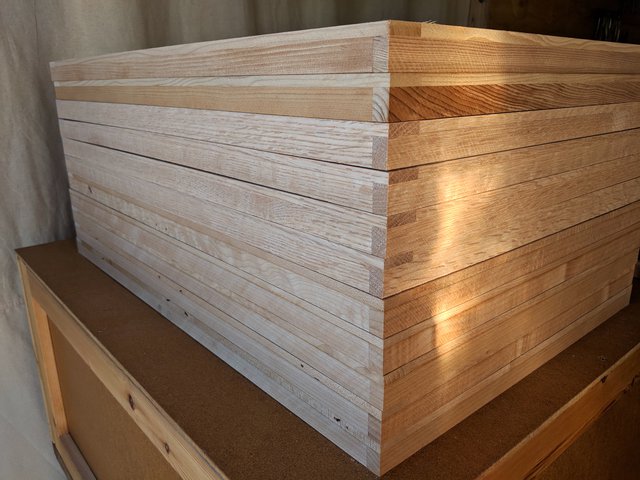 The output of the table saw sled is so satisfactory, only finish sanding is required.