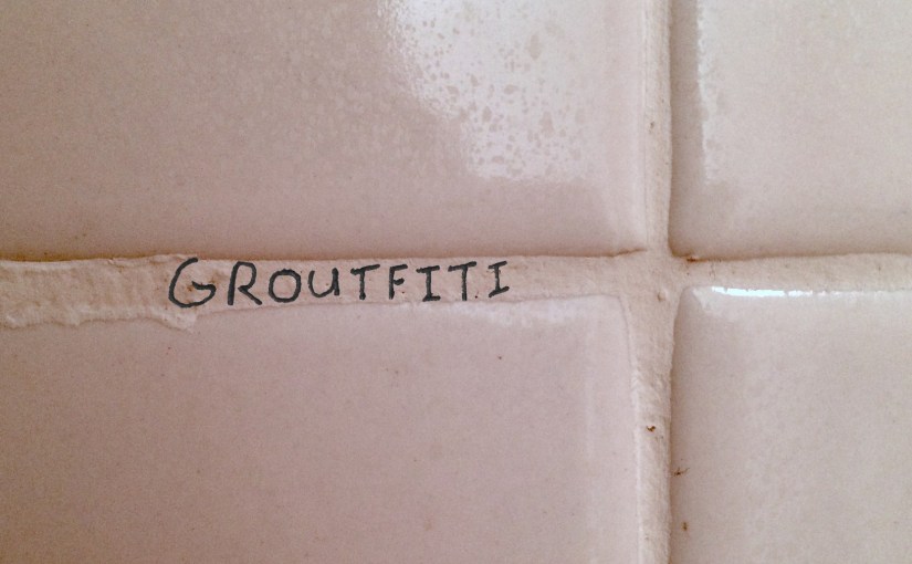 A form of graffiti. It involves writing in the tiny space of grout in between tiles in public toilets. The phrases always are made up of some pun using the word grout... This type of graffiti has no deep meaning, but it is a great example of intellectual fun.
