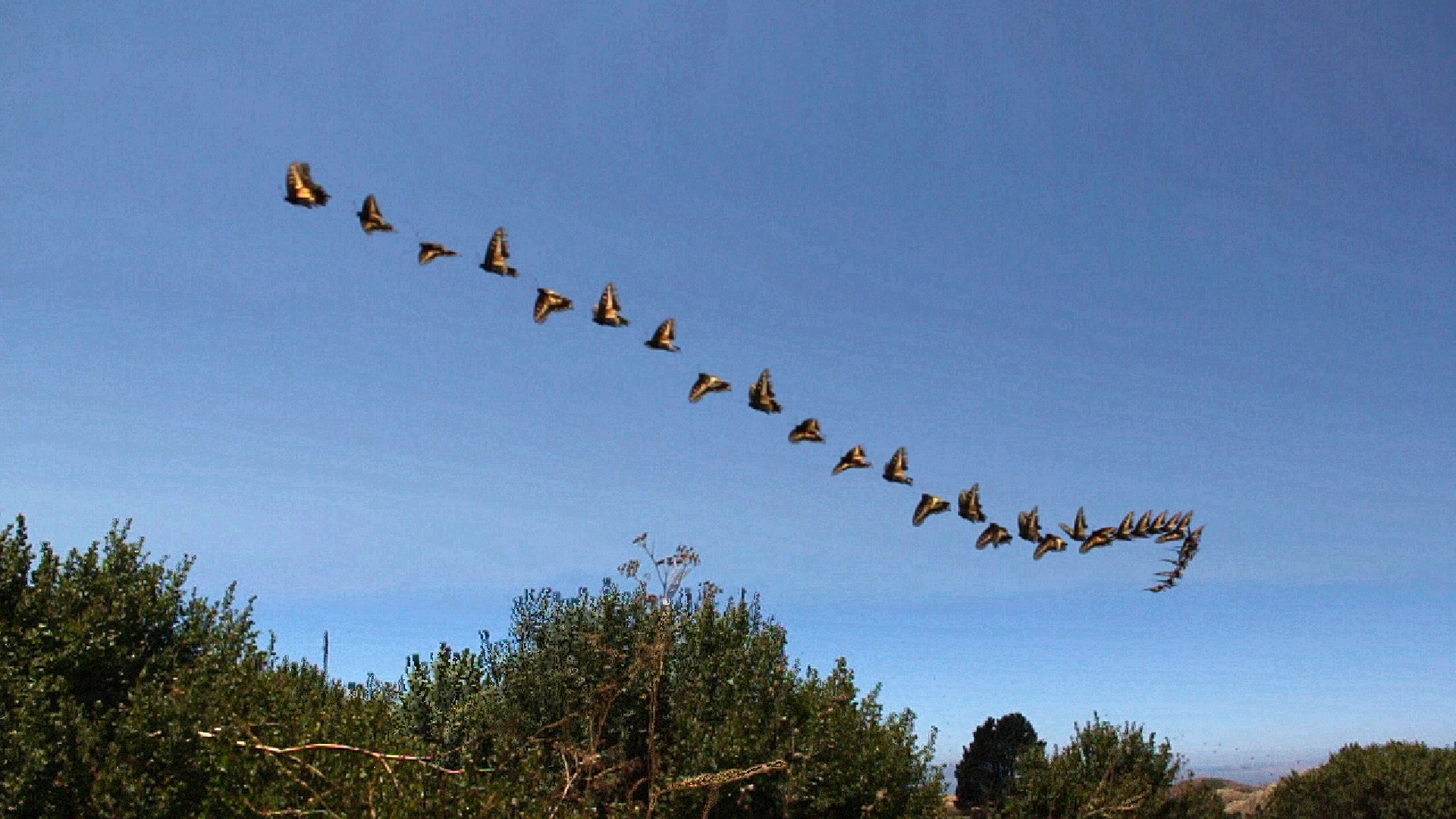 The second, 2017.07.09.9488, captures a swallowtail butterfly in flight. This was one of my earliest recordings for this project, and until I got this new blend in working order, I was unable to process it, due to the yellow and black stripes of the butterfly's wings being both lighter and darker than the background sky.
