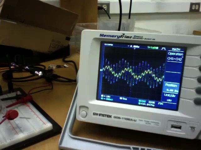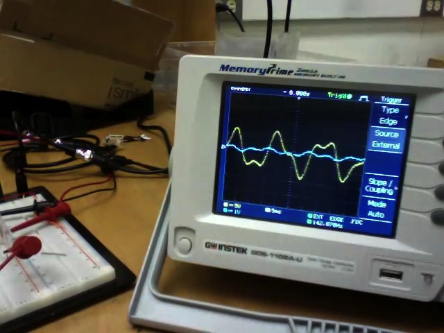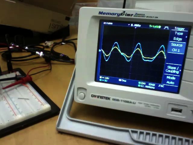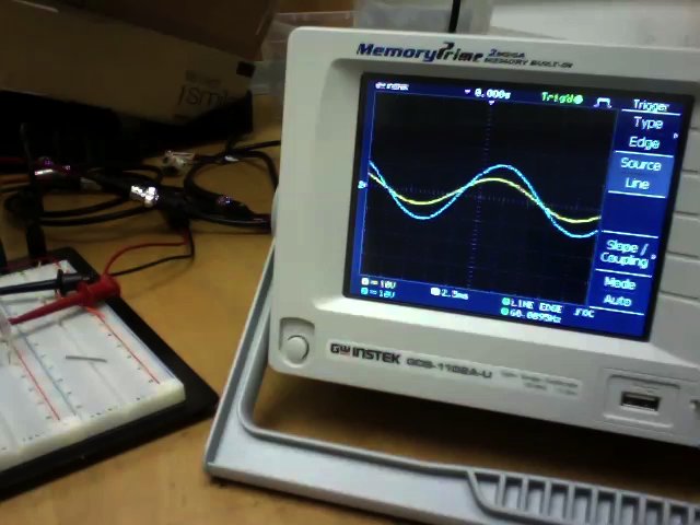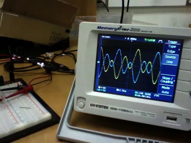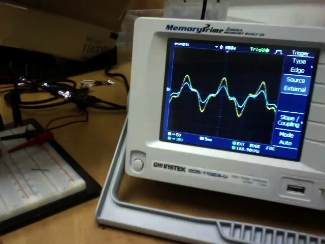 Now, a “serious” user of an oscilloscope would want to adjust the timing so that these repetitive waveforms appear static and frozen on the screen - better for making measurements that way. There’s a “trigger” feature on the scope which can be set to go off on a given portion of the signal, and when that happens the image is redrawn, each time starting from the same point.