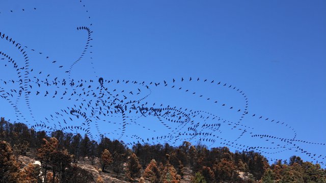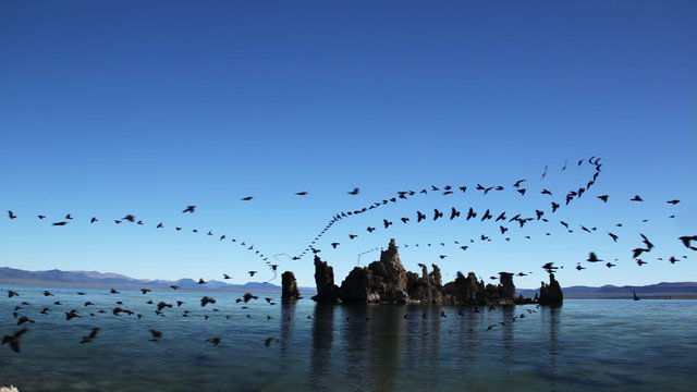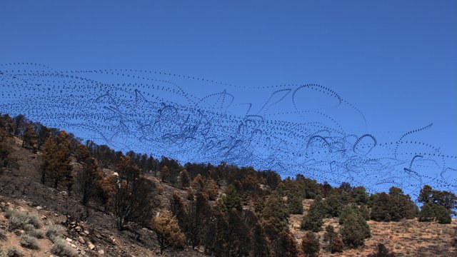These works depict trajectories of flight in and around the Mono Basin in California, captured in the fall of 2017.
