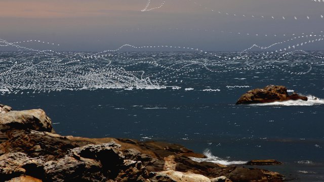 The process begins by capturing a moving subject on video, using a camera on a sturdy tripod. I then extract the individual frames from the video to produce an image sequence. Then, with pixel-processing and computational techniques, the frames are sequentially superimposed, to make a progression that reveals the otherwise invisible tracks that the moving subjects leave behind.