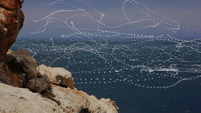 These works depict the trajectories of flying things around coastal Catalonia, captured in the spring of 2018.